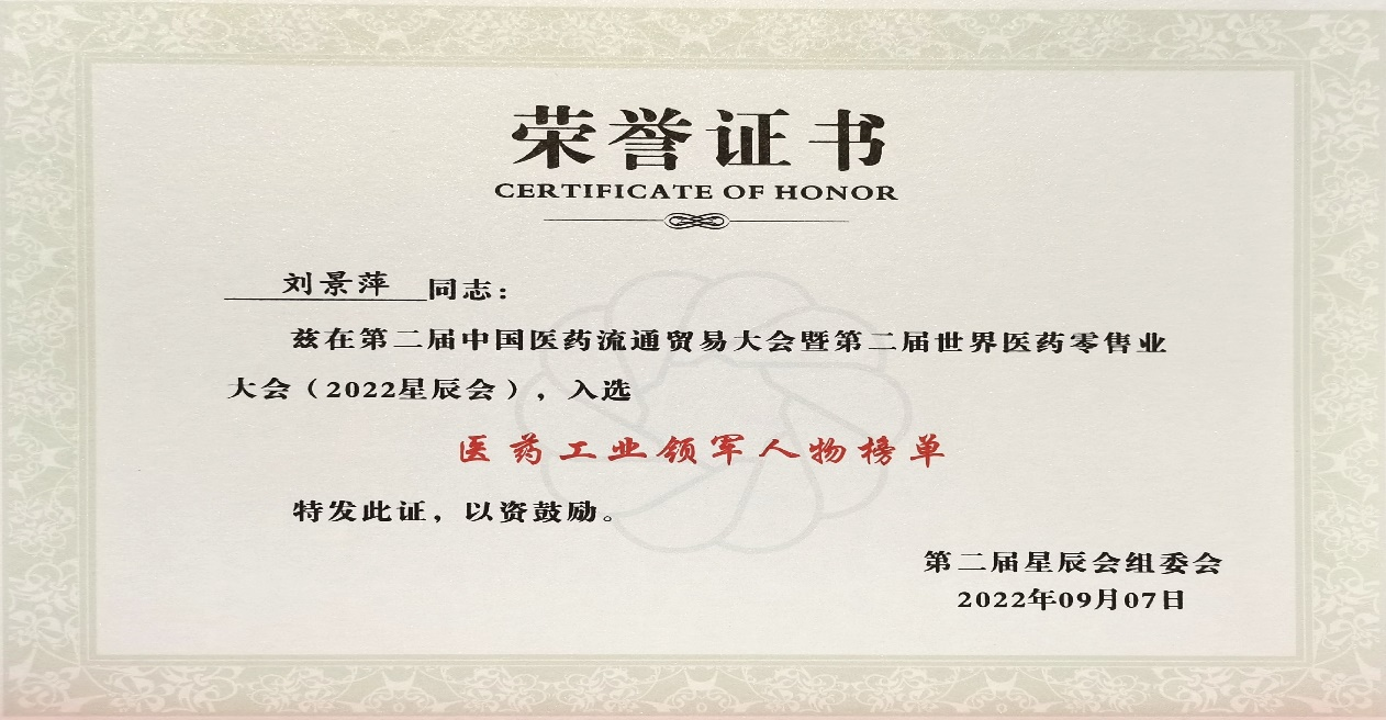 本次星辰会期间,william威廉斩获颇丰,获得多项行业奖项及荣誉。在开幕式上,刘景萍董事长荣获“医药工业领军人物”称号。